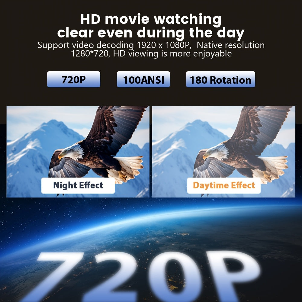The AMOVFILM Mini Projector delivers a clean, cinematic projection experience in a compact, hassle-free design. With a native 1280x720 HD resolution, it produces sharp, clear images that look great on any wall. Its 16:9 aspect ratio ensures the perfect widescreen look for movies, TikToks, or aesthetic room-vibe scenes.